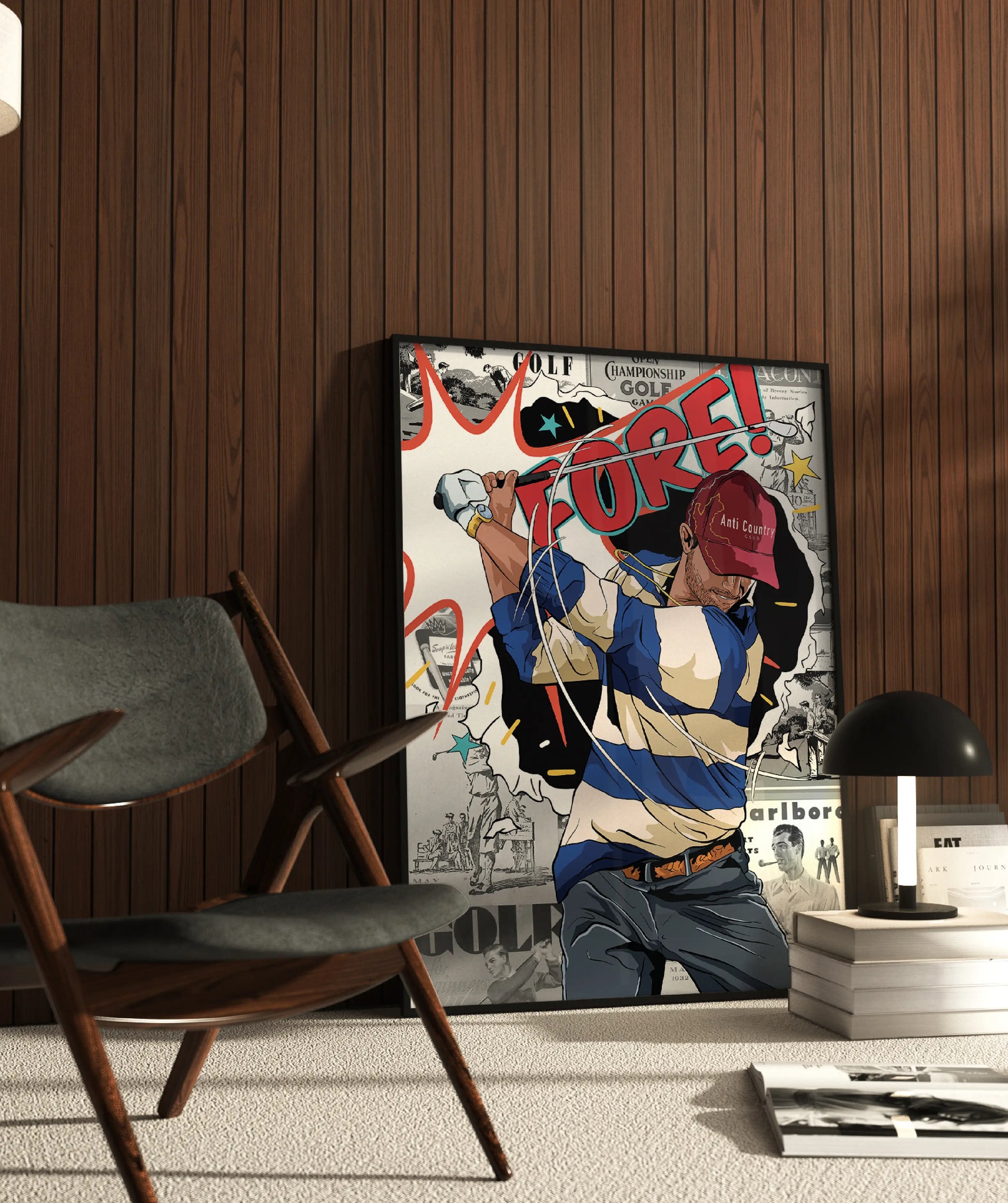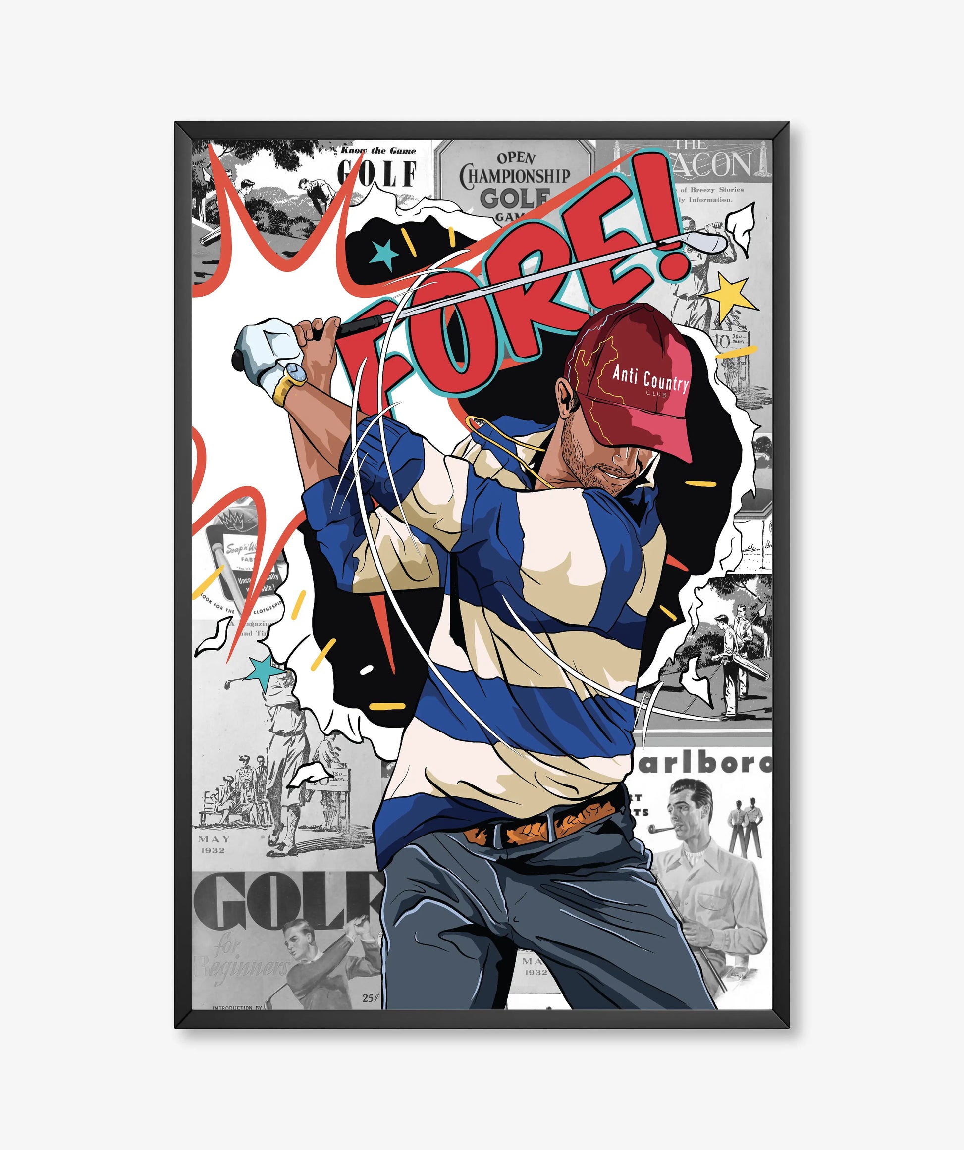 Bold, rebellious, and unapologetically modern, Anti Country Club is a pop art golf print that breaks through the buttoned-up traditions of the game. With a poster-style design and a golfer pushing past the old-school image of golf, this piece is a statement for those who play with style, edge, and zero interest in fitting the mold.