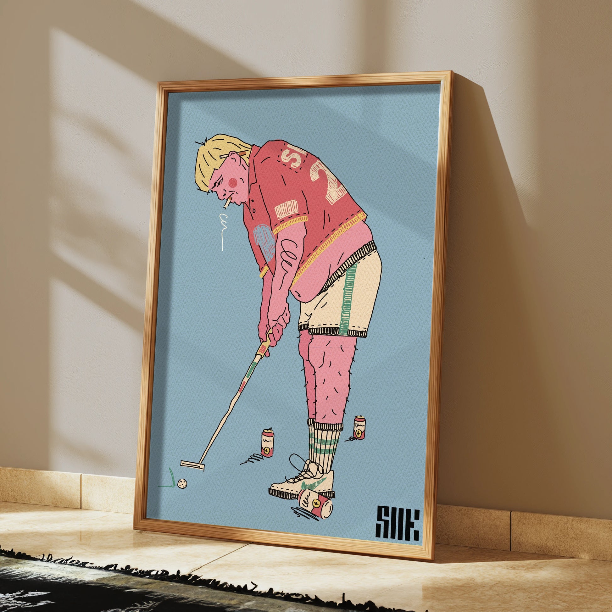 Unapologetic and unfiltered, this piece channels the raw spirit of golf’s most colorful characters. It’s about swagger over polish, attitude over formality - the side of the game that doesn’t care about country club rules. With its bold lines and irreverent energy, this print makes a statement on any wall: golf isn’t just tradition, it’s personality.